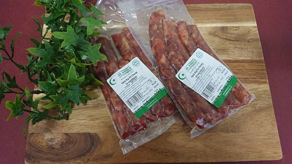 Het kenmerkt zich aan de kruidige smaak en rode kleur. Om dit uniek product in ons assortiment te hebben, hebben we rund en kalfsvlees gebruikt en een extra smaak te geven ook een beetje pikant gemaakt. En het voornaamste is, dat het halal is.